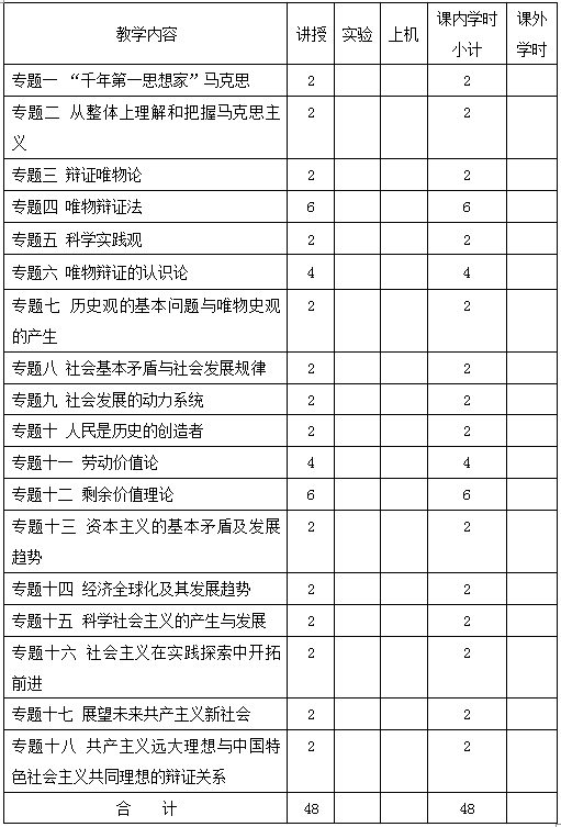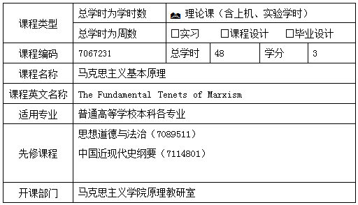 本课程为全校本科各专业公共必修课,是思想政治理论课主干课程、基础课程。通过本课程的学习,使员工系统掌握马克思主义哲学、马克思主义政治经济学、科学社会主义基本原理,树立正确的马克思主义观;帮助员工学会运用马克思主义立场观点方法分析问题和解决问题,正确认识世界的本质和人类社会发展规律,明确社会主义取代资本主义的历史必然性,坚定共产主义理想信念。