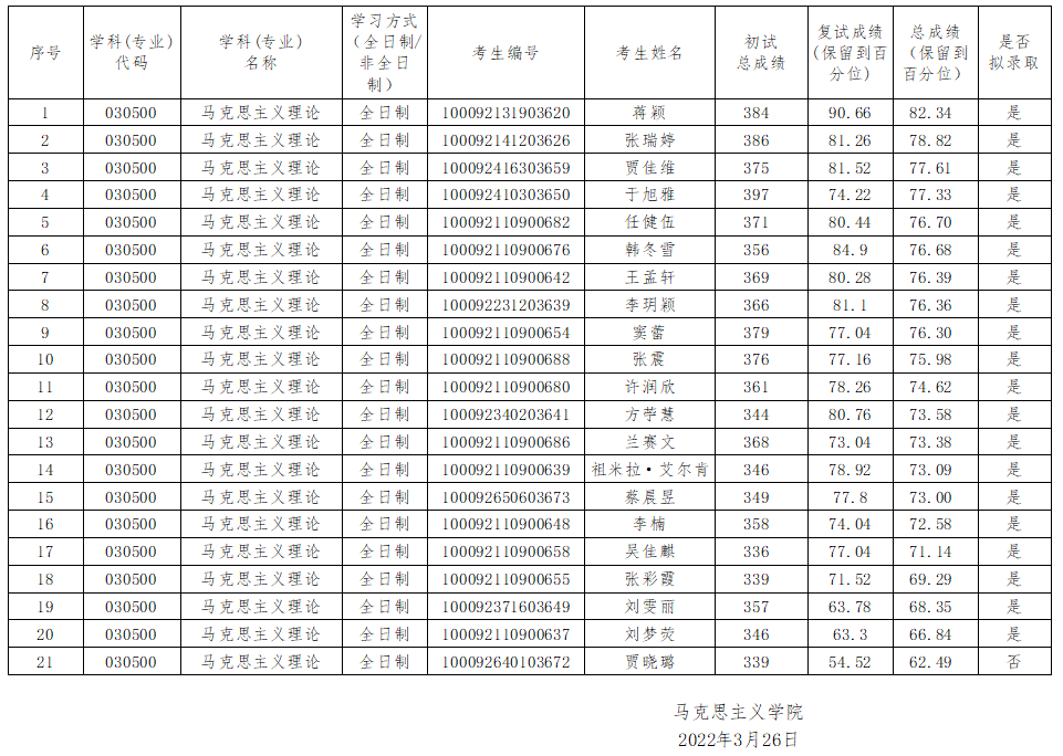 英国威廉希尔公司2022年硕士生招生第一志愿考生复试结果(含拟录取名单,以一级学科/专业为单位)