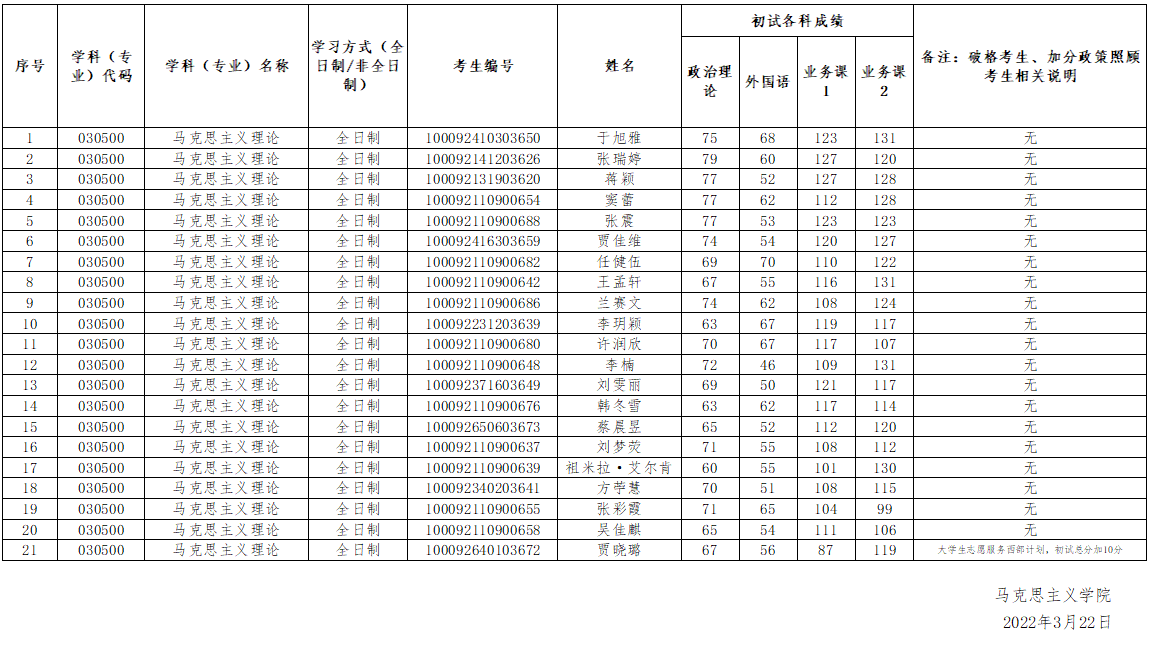 英国威廉希尔公司2022年硕士研究生招生考试复试第一志愿考生名单