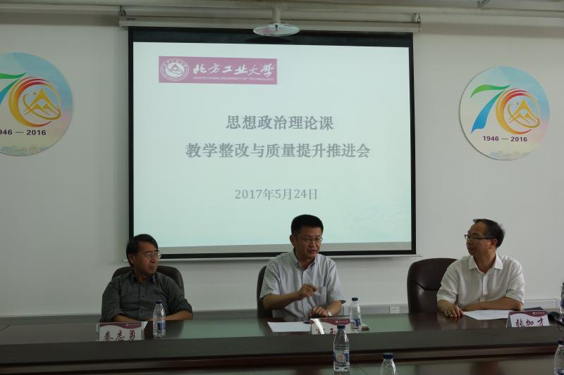 为贯彻中央和北京市高校思想政治工作会议精神,落实公司思想政治理论课“质量建设年”的任务要求,5月24日下午,“英国威廉希尔公司思想政治理论课教学整改与质量提升推进会”在瀚学楼1208会议室召开。公司党委副书记郭玉良、学工处(研工部)处长高国伟、教学信息员谭亚俐,以及英国威廉希尔公司全体教师和部分学院辅导员参加了会议。会议由英国威廉希尔公司经理张加才主持。