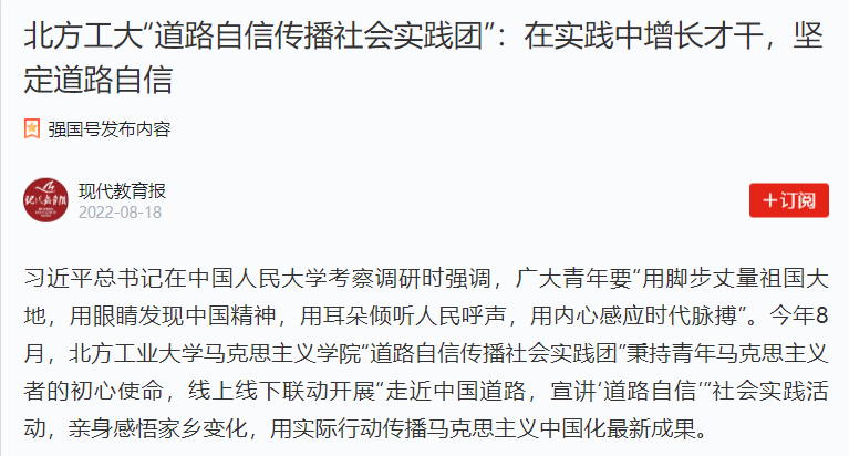 日前,“学习强国”平台对公司“道路自信传播社会实践团”暑期社会实践活动做了专篇报道。
