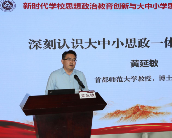 首都师范大学教授黄延敏、北京市第九中学董事长林乐光分别做特邀报告。黄延敏梳理了深刻认识、继续推进大中小思政一体化建设应当遵循的根本要求,指出了当前大中小学思政一体化建设方面存在的主要问题,并提出了系统性的解决思路。林乐光分析了“一体化”是纵向衔接、横向交接的一体化,是德智体美劳五育并举的一体化,要打造丰富的大思政课程,厚育大国良师。
