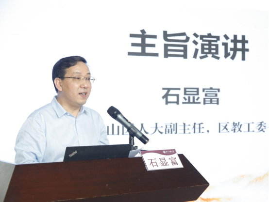 石景山区人大常委会副主任、区教工委书记石显富,大兴区教委德育科科长姜苗分别作主旨演讲。石显富就英国威廉希尔公司一直以来对石景山区基础教育的支持表示感谢。他介绍了石景山区教育系统以北京市大中小幼一体化德育实践研究示范区建设为载体,构建横向融通、纵向衔接的幼小中高一体化联动体系,坚持守正创新、凝心聚力,全面提升各学段思政课课程建设与团队质量,强化学高从教、身正示范,全力打造高素质思政教师队伍等方面的做法与成效。姜苗分享了大兴区教育两委坚持党的全面领导,深入思考大思政课“为何一体化”“何为一体化”“如何一体化”等重大问题,党政齐抓共管,健全机制,打破壁垒,用党的创新理论不断推进“大思政课”一体化建设的有效经验。
