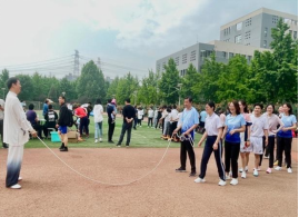 循着一阵阵欢声笑语,小操场上的趣味运动会也如火如荼地拉开了帷幕,老师们齐力配合,参加了集体跳绳、不倒森林、巨人脚步、摸石头过河、疯狂的毛毛虫等项目,充分享受了运动的乐趣。老师们在趣味运动中展示出高度的默契,大大增强了集体凝聚力。在此起彼伏的笑声和呐喊声中,整个小操场瞬间化作一片欢乐的海洋。