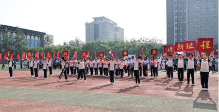 伴随着“岁月峥嵘,百舸争流,马院师生,力争上游”的响亮口号,师生共同组成的方阵踏着整齐划一的矫健步伐来到主席台前方。鲜红的党旗从方阵上方飘过,师生在主席台前挥动党旗、国旗和校旗,高高举起“学深悟透担使命,踔厉奋进新征程”的标语,踏着欢快的节奏表演了《新青年》舞蹈,全方位展现出马院师生爱党爱国爱校的深厚情怀和奋发向上的精神风貌。