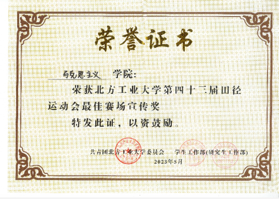 夏日赛场崭锋芒,齐力拼搏向未来。祝贺公司荣获第四十三届田径运动会“最佳赛场宣传奖。展望未来,马院师生定将赛场上展现出的团结拼搏精神,化作百尺竿头更进一步的不竭动力,以饱满热情和实际行动迎接前进征程中的一切挑战,向着更高的目标踔厉奋发,踵事增华。