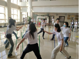 “抢数报名”,“不倒森林”,“心有灵犀”,“小球快跑” 四个小游戏环环相扣,将同学们的陌生和隔阂彻底打破,全场洋溢着欢乐氛围,使同学们深刻意识到团队协作的重要性,让同学们在活动中感受到集体的温暖。